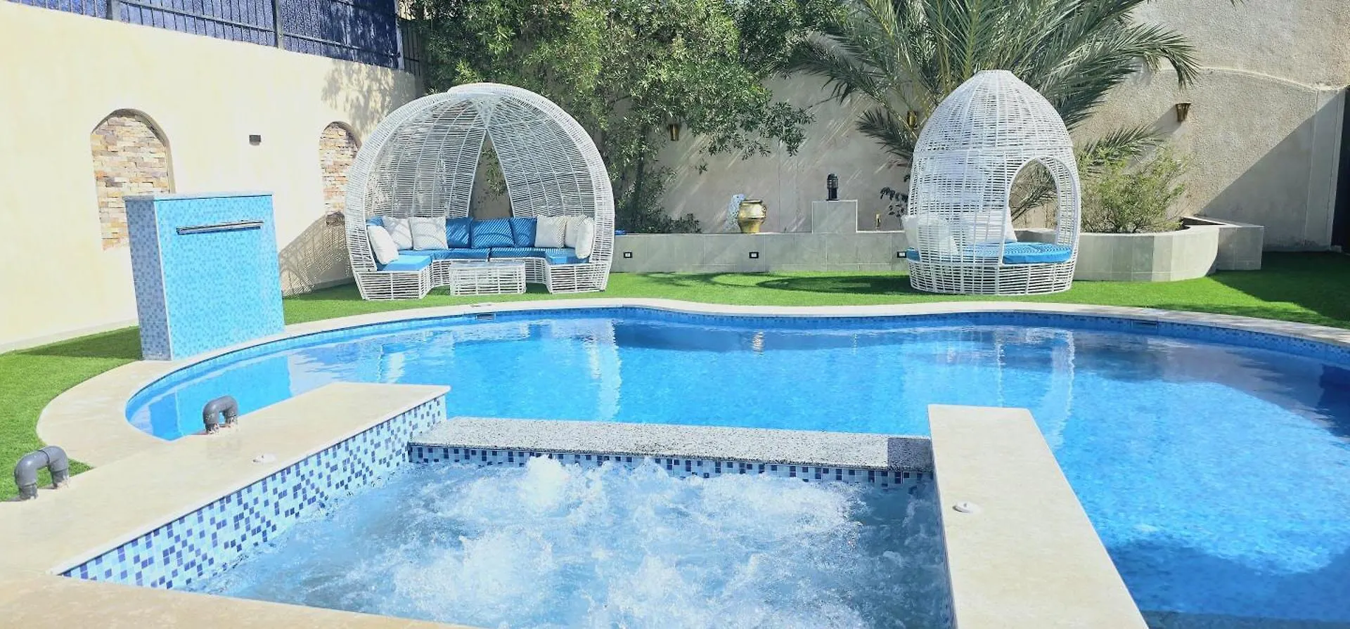 Situata nel quartiere Al Ahyaa, Luxury Royal Blue Family Villa 8Pers Private Pool comprende una piscina esterna con una jacuzzi per un'esperienza rilassante. Dotata di un patio soleggiato, la villa si trova a 1 km da Baron Beach Resort.